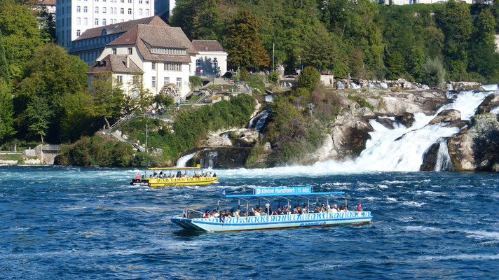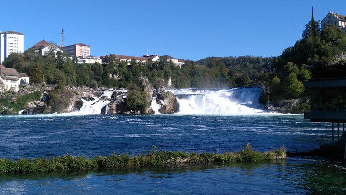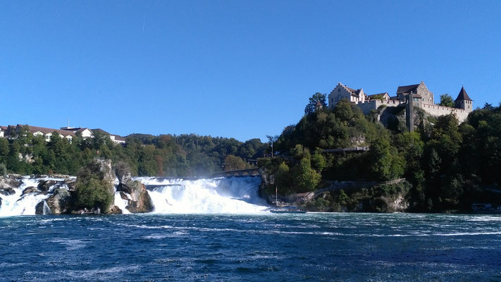 Der Rheinfall ist mit 23 Meter Höhe und 150 Meter Breite der größte und wasserreichste Wasserfall Europas. Nur wenige Kilometer vom Bodensee entfernt, gehört der Rheinfall zu den großen Attraktionen dieser Gegend. Er liegt westlich vom Untersee in der Schweiz und lockt zahlreiche Reisende an, die von mehreren Plattformen aus einen faszinierenden Blick auf die Wassermassen zwischen den Felsen haben. Ein weiterer Aussichtspunkt ist das Schlösschen Wörth, das auf einer Insel im Rhein liegt.